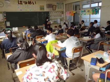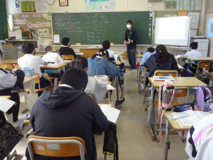 国語の授業で、漢文を学習しています。算数では、図形の拡大・縮小について学習しています。