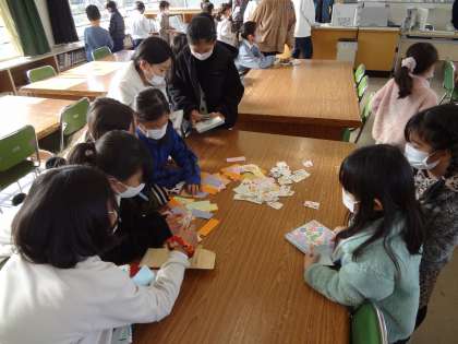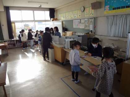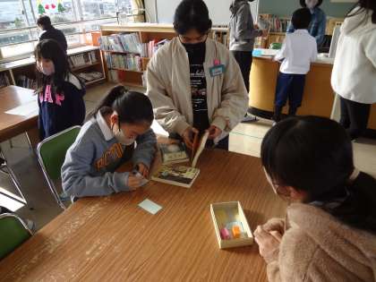 図書館まつりで多くの子が本をたくさん読みました。本を借りると図書委員さんにスタンプを押してもらえます。スタンプがたまると、図書委員会作成のしおりかシールをもらうことができます。