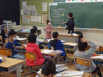 算数の授業、前に出て意見を発表しました。体育の授業、なわとびの練習を頑張りました。