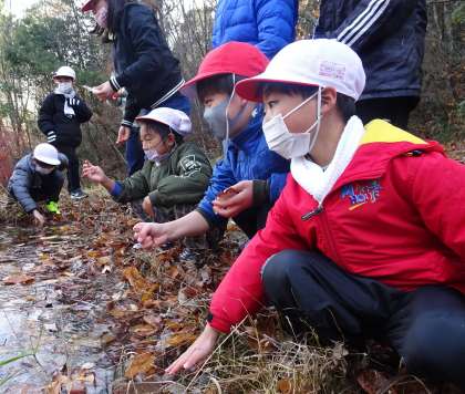 トヨタの森へ校外学習に出かけました。冬の森の様子を観察しました。冬の森に何があるか説明を聞くなど楽しく学習しました。