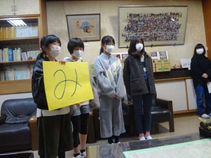 冬休み前、オンラインで全校集会を行いました。生活委員会の児童が「つみきおに」の話をしました。