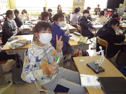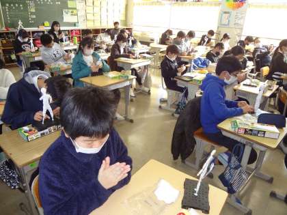 社会科で、不平等条約の内容の復習をしています。図工の授業で、楽しそうに作品制作をしていました。