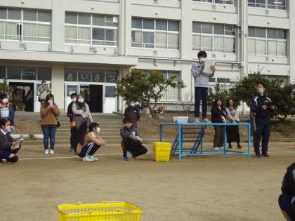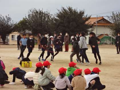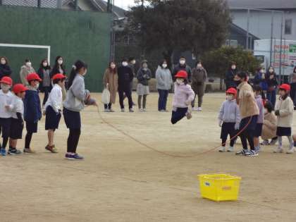 1年生の縄は6年生が回します。6年生は、流れるように滑らかに飛んでいました。閉会式の様子です。