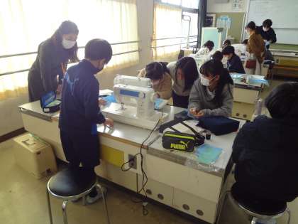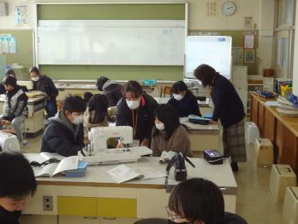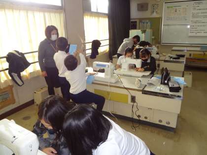 家庭科でミシン学習をしました。ミシンボランティアのみなさんに教えていただきました。