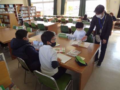 一人一人の課題に対して真剣に学習に取り組んでいます。図書館で興味を持った本を選び、読んでいます。