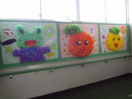 おめでとうメッセージの掲示板です。体育でティーボールを楽しんでいます。