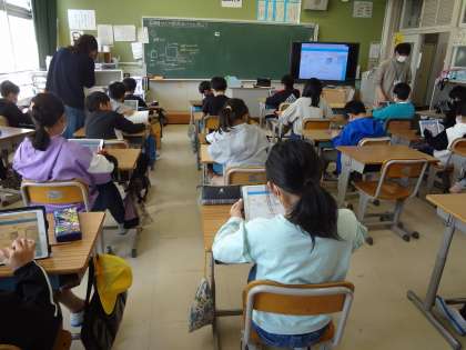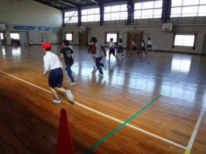 算数の授業、2人の先生で支援しています。体育の授業、元気に走っています。