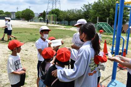 ペア学年での交流会、フレンドリータイムを行いました。1年生と6年生のペア学年で、宝探しゲームをしました。