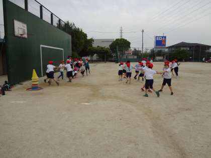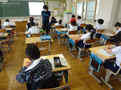 体育の授業、手をつないで輪になりくるくる回っていました。算数の授業、引き算の筆算の学習をしています。