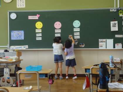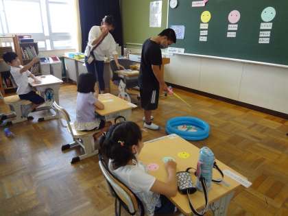 にこにこ、ぷんぷんなど、いろいろな気持ちがあることを理解し、表情から読み取ったり、表情で気持ちを伝えたりする学習です。写真カードやゲームを通して楽しく学びました。