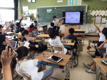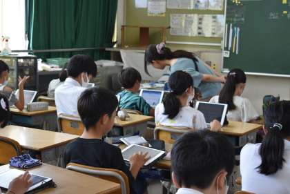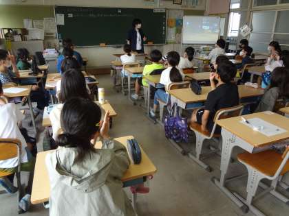 情報活用能力の育成に向けて、自分たちの意思で自律的にデジタル社会と関わっていくためのデジタル・シティズンシップ教育の授業です。メールなどで上手に伝える方法などを考えました。