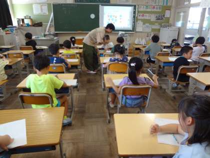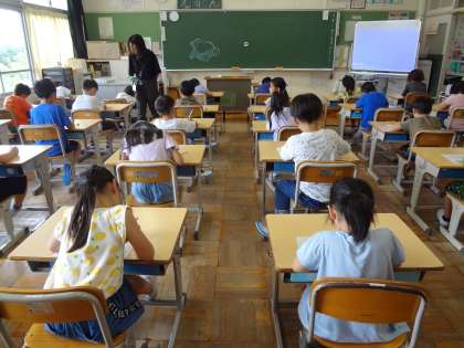 夏休みが終わり、学校が始まりました。1年生は落ち着いて学習に取り組んでいました。