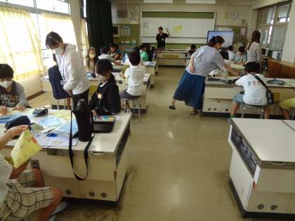 5年生の家庭科の授業です。地域学校共働本部のボランティアのみなさんに、学習支援に入っていただきました。