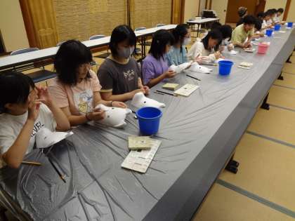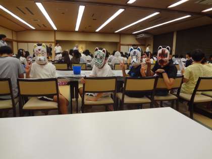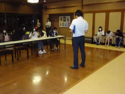 夕食後の体験活動の様子です。就寝前に班長会を行いました。
