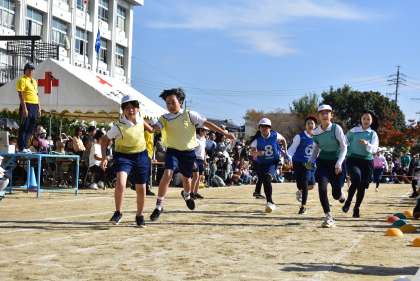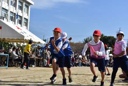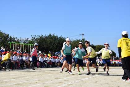 5・6年生の「学級対抗リレー One for all, All for one」です。