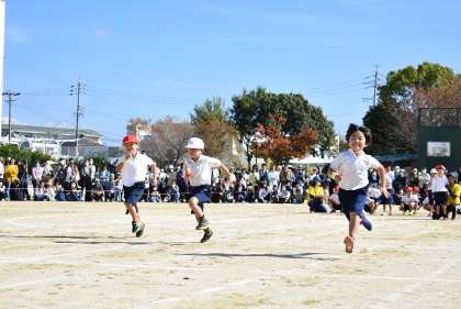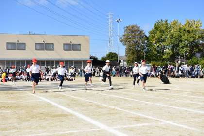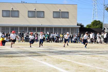 1・2年生の競走「ゴールめざしてよーいドン」です。