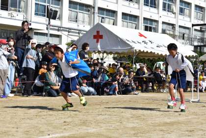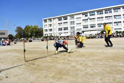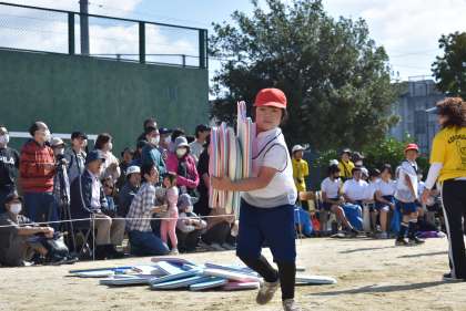 3・4年生の競走「乗って! くぐって! 運んで! こえて!」です。