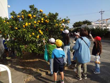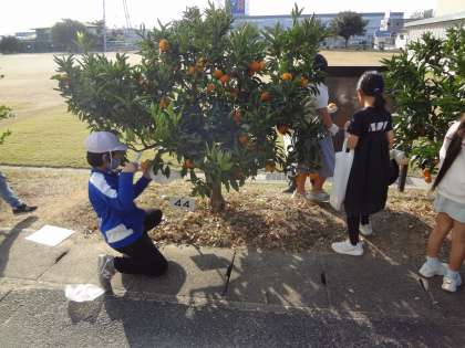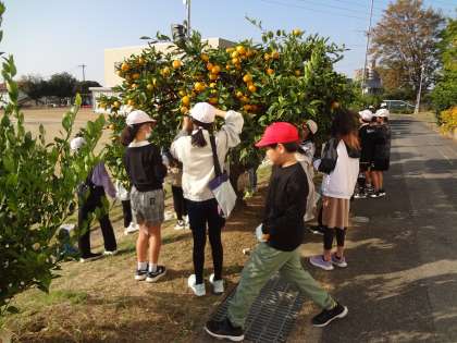 3年生と4年生が、ミカンの収穫を行いました。