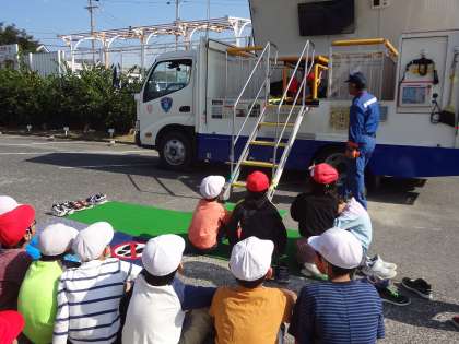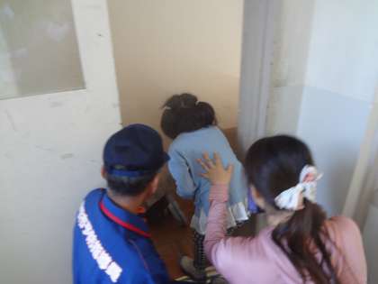 全校で防災教室を行いました。煙道訓練、起震車体験、消火器訓練を行いました。