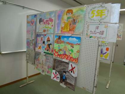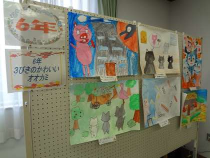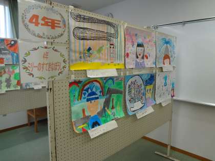 朝日丘交流館の行事、朝日丘フェスタで図工の作品を展示しました。