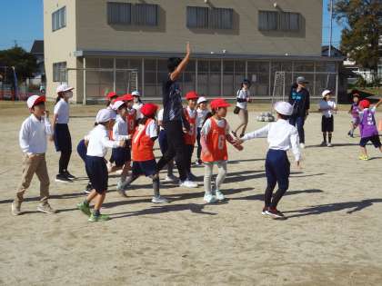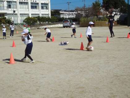 グランパスの方から、サッカーを教えていただきました。