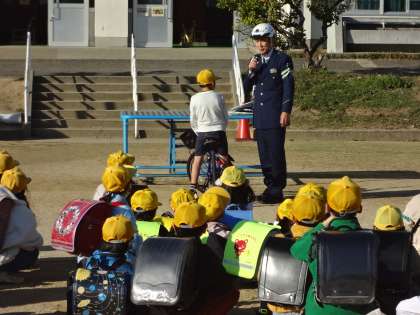 1年生と3年生の下校の時に、警察の方から交通安全のお話をいただきました。
