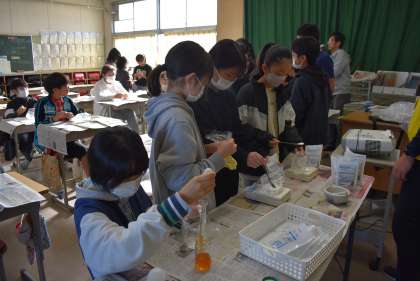 はじめの会でミカンマンが登場しました。6年生、4年生の活動の様子です。