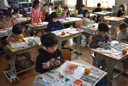 おわりの会でミカンの収穫数の発表です。2年生、3年生の活動の様子です。