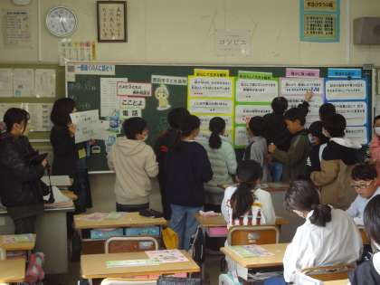 豊田市の子ども権利条例について教えていただきました。大切だと思うものにシールを貼る活動を行いました。