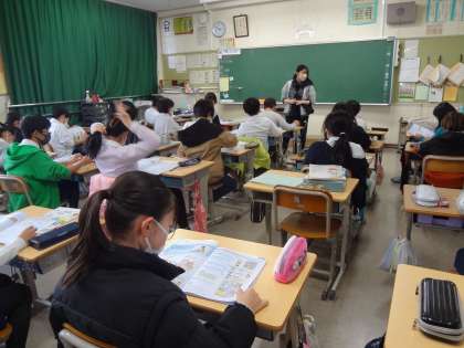 家庭科、整理整頓の学習です。社会科、ミカンの栽培についての学習です。