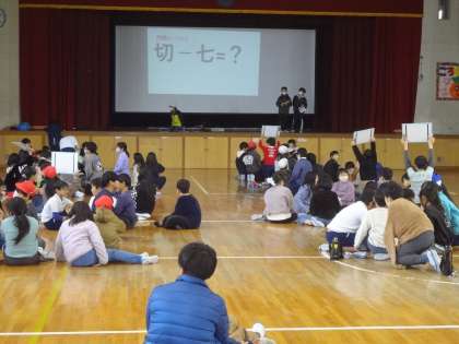 縦割り班ごとにゲームやクイズを行い、楽しい時間を過ごしました。