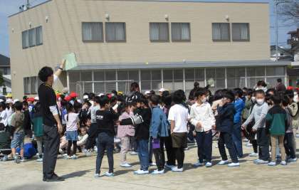 学校で火事が発生した時の対処の仕方を知ることをめあてに、第1回避難訓練を行いました。