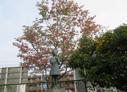 正門にあるハナミズキが色鮮やかに輝いていました。