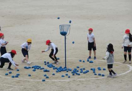 そこで、今年度は投げる力をアップさせるために、体育の授業を中心に、楽しみながら力がつくように工夫した授業を行っています。