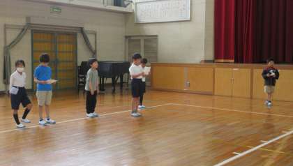 2時間目が終わった後の休み時間に、2年生の代表の子たちが、5月7日(火)に予定している学校探検のはじめの会のリハーサルをしていました。