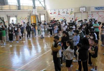 2年生からは、校歌のプレゼント、3・4年生は王冠のプレゼント、5年生はメッセージ付きのメダルをプレゼントしました。