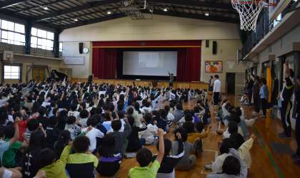 衣丘タイムに全校集会を行いました。