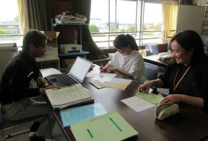 毎週月曜の午前中、本部長1名、コーディネーター2名の計3名が会議室で活動をします。