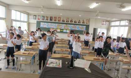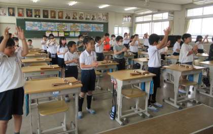 音楽室から「ドレミのうた」の元気な歌声と身体を使った子供たちの明るい表情が見えました。