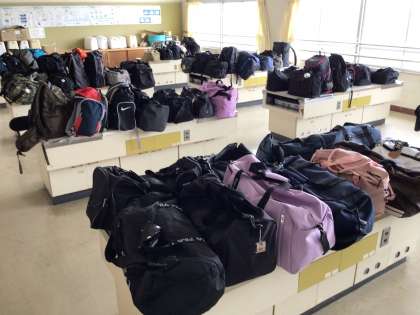 今日持ってきた大きめのリュックやバックは、荷物点検をして家庭科室に置きました。