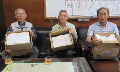毎年、高齢者クラブ「三和会」の皆さんが手作りの雑巾を寄付してくださっています。