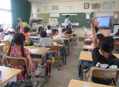 今日は3年生と6年生で教育実習生が算数の授業を行いました。