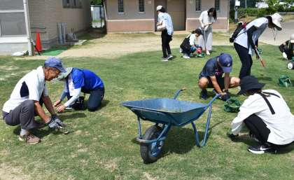 講習会では、芝刈り機の使い方や、草取りの仕方、スプリンクラーの操作の仕方などの講習を受け、実際に作業をしました。