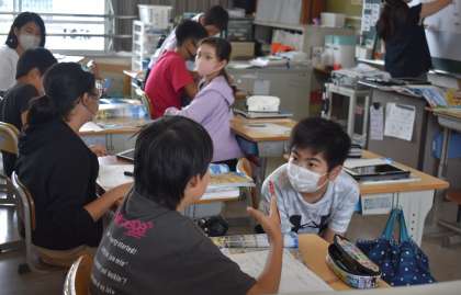 6年生社会科「縄文のむらから古墳のくにへ」「世界とつながる日本」の授業の様子です。