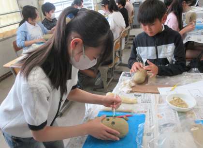 6年生は、講師の先生を招いて「はにわ作り」を行いました。