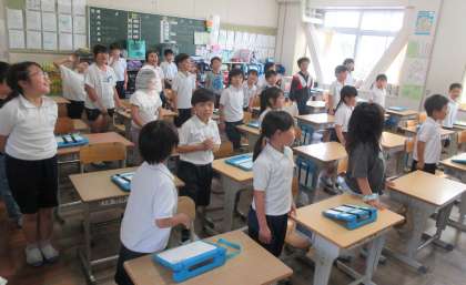 2年生は、休み時間が終わり5時間目が始まるときの様子です。