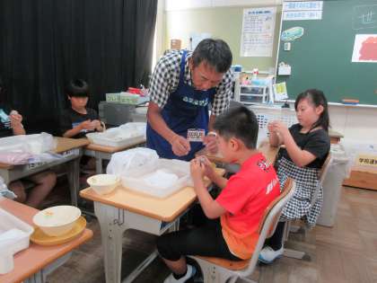 サポーターさんの手元を見ながら、子供たちも一生懸命丸めていました。