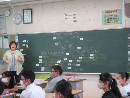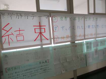 各クラスでは、しおりを使って日程を確認したり、修学旅行のテーマをもとにどのような修学旅行にするのかを話し合ったりしていました。