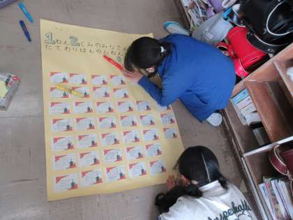 そのお礼として、メッセージカードを作り、1年生にプレゼントをする準備をしていました。
