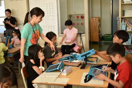 学習用タブレットを使って操作しながら考え、グループでは自信のないところをみんなで考え合い、磨き合いの場では、友達の発言をしっかり聞きながら学習を進めました。
